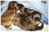 Oktober 2009 Aufbruchstimmung - Neuanfang - Renovierung. Hardy ist jeden Tag fleißig das neue Haus für den bevorstehenden Umzug im Dezember herzurichten. - Hundegerecht, praktisch und gemütlich. Seine Kreativität ist unerschöpflich. Aiko und Ai-Yoshi wachsen zu einem Rüdenteam gegenseitiger Freundschaft und Bewunderung zusammen. Ichi und Ayumi sind eben wie Mutter und Tochter "der Apfel fällt nicht weit vom Stamm". - Das Highlight des Monats - Yuma`s Geburt - unser B-Wurf. Sie hat uns ihre ersten Welpen geschenkt, vier wunderschöne, typvolle, gelungene, kleine Akita. 3 Jungs / 1 Mädel. Darunter natürlich Bushido (der Weg des Kriegers), der immer schon gewünschte und erhoffte weiße Rüde. Natürlich bleibt er bei uns. - Keine Frage und keine Diskussion - wir haben eben eine Vorliebe für weiß. Auf unsere Maus Yuma (Eto Asanuma) sind wir besonders stolz, denn seit dem wir sie nun haben, hat sie sich zu einem exzellenten Akita entwickelt, was bei ihrer nicht so optimalen Vorgeschichte nicht unbedingt zu erwarten war. (Steckte wohl in den Genen). Sie ist eine tolle Mutter und für uns eine super liebe Maus und wir sind mächtig stolz auf unser Mädchen. Wurfvater Daiji go Kiyama hat in Hannover seinen letzten fehlenden Punkt zum Champion geholt und ist nun VDH Champion National. Also, was will man mehr - eine tolle Verpaarung - tolle Welpen - ein gelungener Wurf. Wir sind mehr als zufrieden und genießen das Welpenkino.